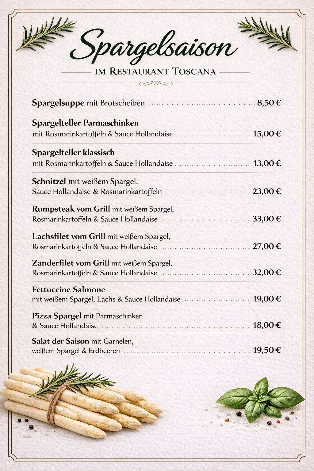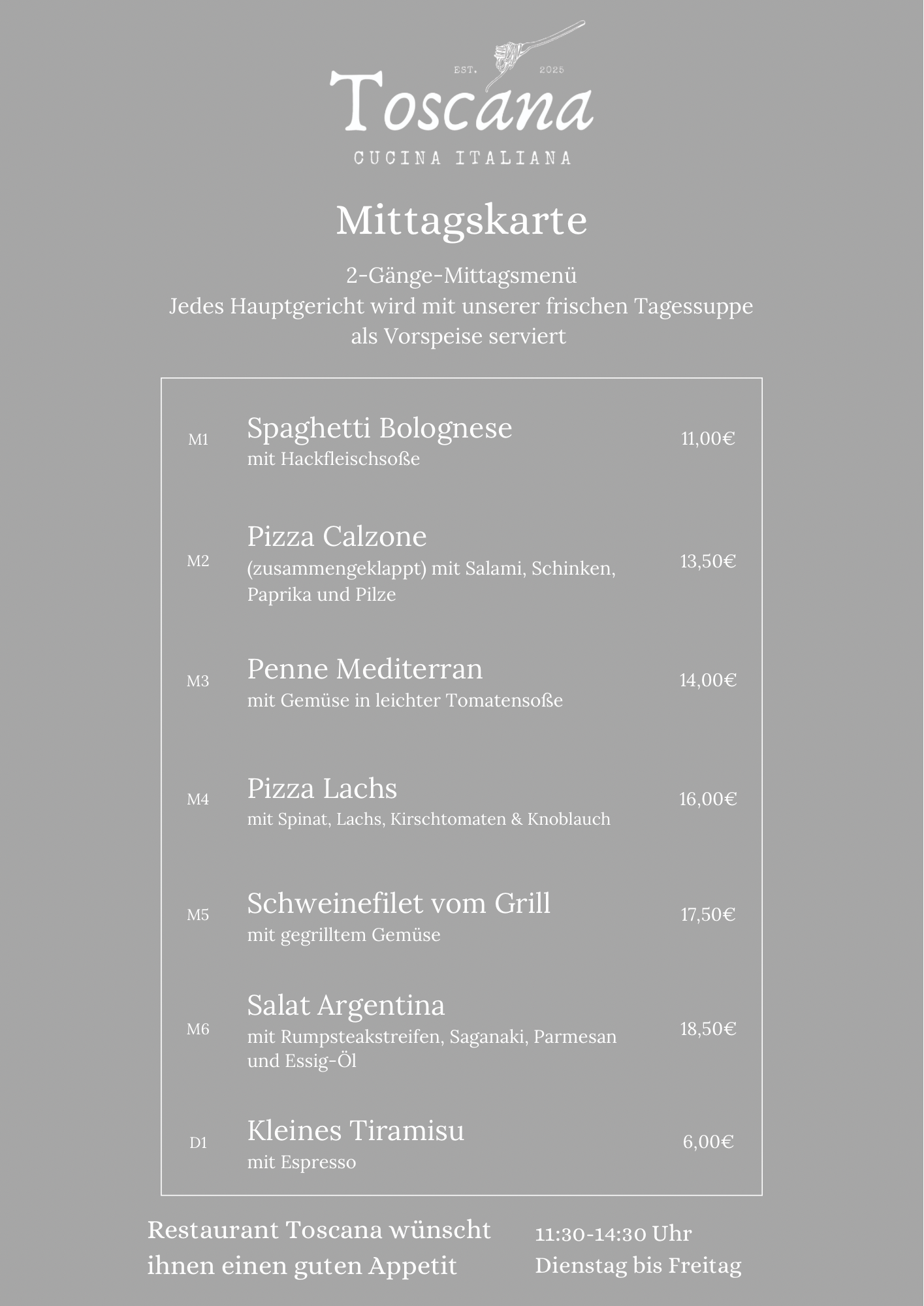 Unsere Weine sind wie die Gerichte: unkompliziert, aber mit Charakter. Ein spritziger Weißwein, der den Fisch umarmt, ein vollmundiger Rotwein, der dem Steak die Hand reicht, oder ein kühler Rosé für laue Abende. Jede Flasche ist eine Einladung, den Moment zu genießen. Sag uns, worauf du Lust hast, und wir finden den perfekten Begleiter.